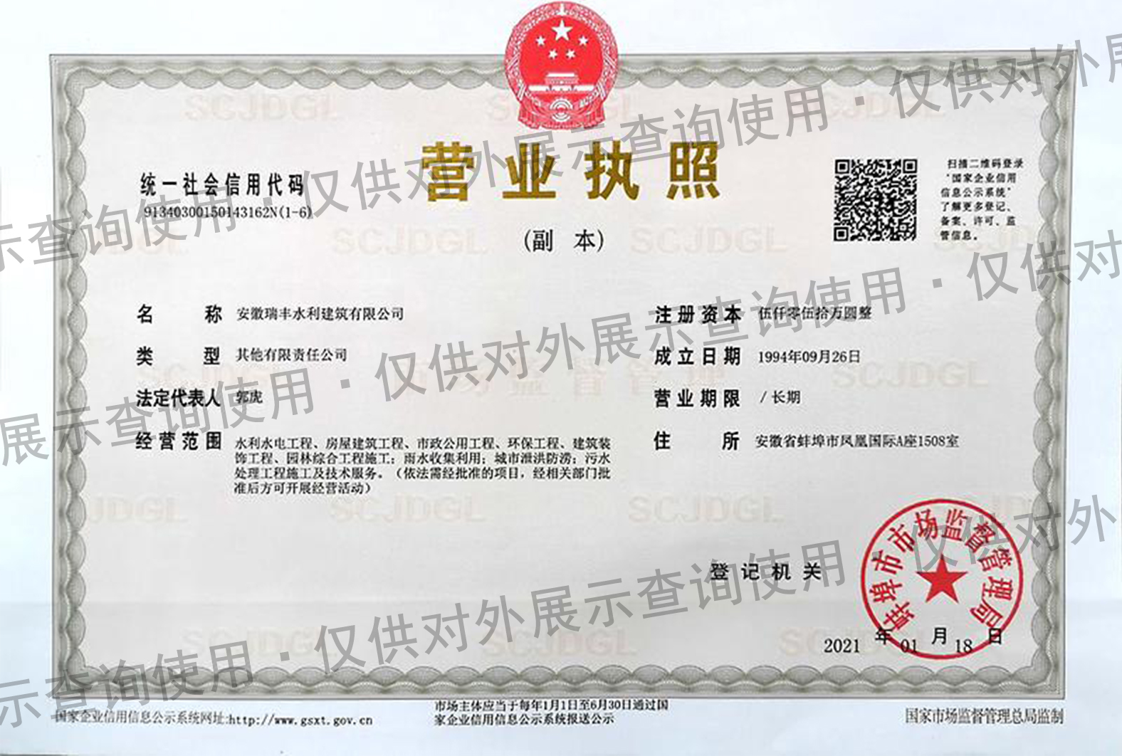 安徽瑞豐工程科技集團(tuán)有限公司于2010年完成改制,注冊(cè)資本金一億零一百萬元,擁有水利水電工程、市政公用工程、房屋建筑等施工總承包貳級(jí)資質(zhì),電子與智能化工程、環(huán)保工程等專業(yè)承包貳級(jí)資質(zhì);現(xiàn)有員工220余人,一、二級(jí)建造師95人,中、高級(jí)以上職稱112人;公司成立了黨支部,現(xiàn)有黨員28人。安徽瑞豐目前為“國家高新技術(shù)企業(yè)”、水利部“水利安全生產(chǎn)標(biāo)準(zhǔn)化一級(jí)單位”、“安徽省水利水電行業(yè)協(xié)會(huì)副會(huì)長單位”,被評(píng)為水利部“AAA”級(jí)信用企業(yè),連續(xù)多年榮獲“安徽省優(yōu)秀建筑業(yè)企業(yè)”、“安徽省守合同重信用”AAA級(jí)企業(yè)等榮譽(yù)。安徽瑞豐近年來抓住大規(guī)模水利工程建設(shè)機(jī)遇,相繼參與建設(shè)了沿江、沿淮、引江濟(jì)淮等一大批“172”、“150”國家重點(diǎn)水利工程,創(chuàng)建···