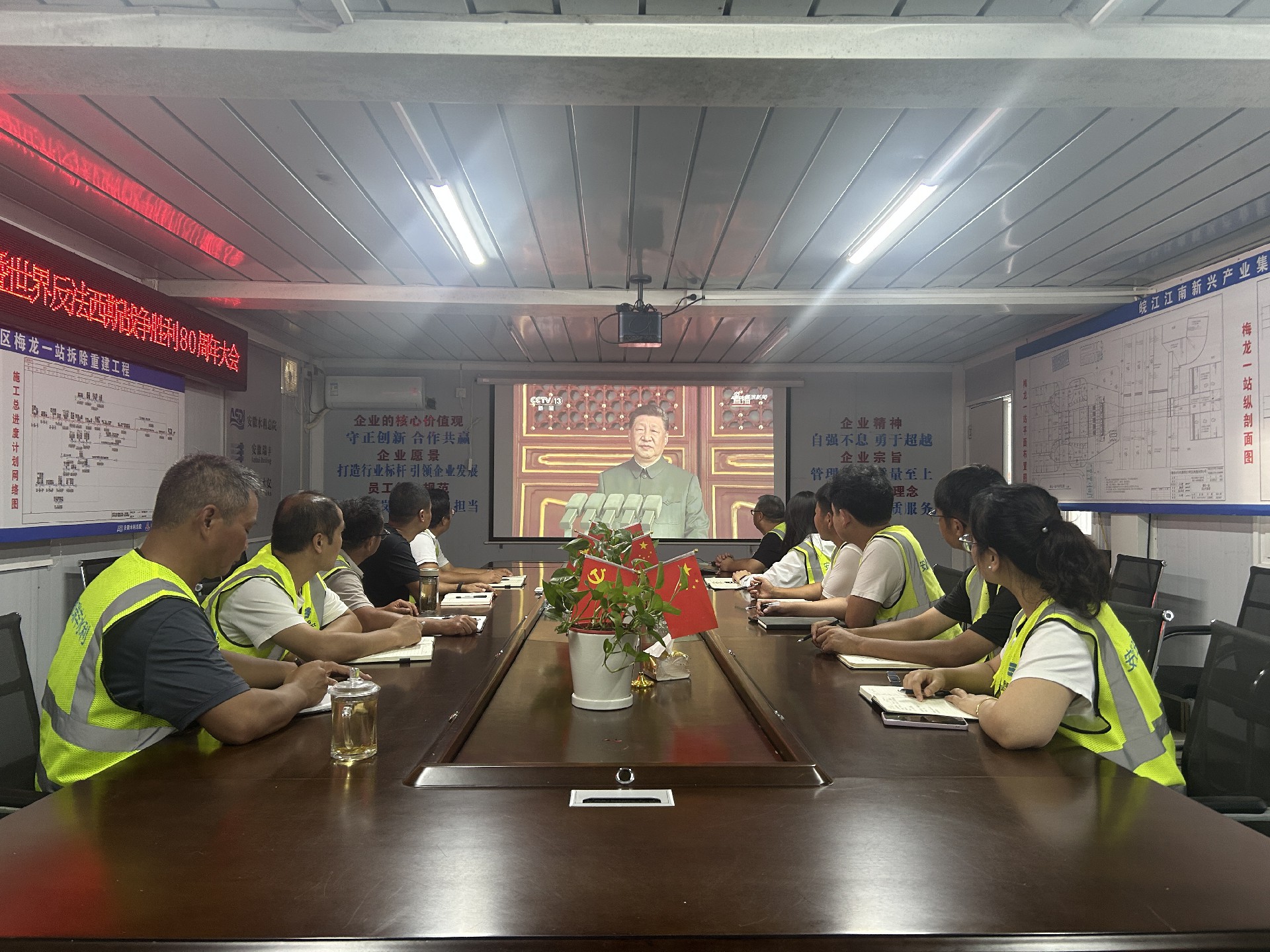 集團公司積極組織機關及各在建項目部員工觀看盛會,聆聽習近平總書記重要講話,共同銘記歷史、緬懷先烈,弘揚偉大抗戰精神,汲取奮進力量,以堅如磐石的決心、只爭朝夕的勁頭、堅韌不拔的毅力,向著中華民族偉大復興砥礪奮進!