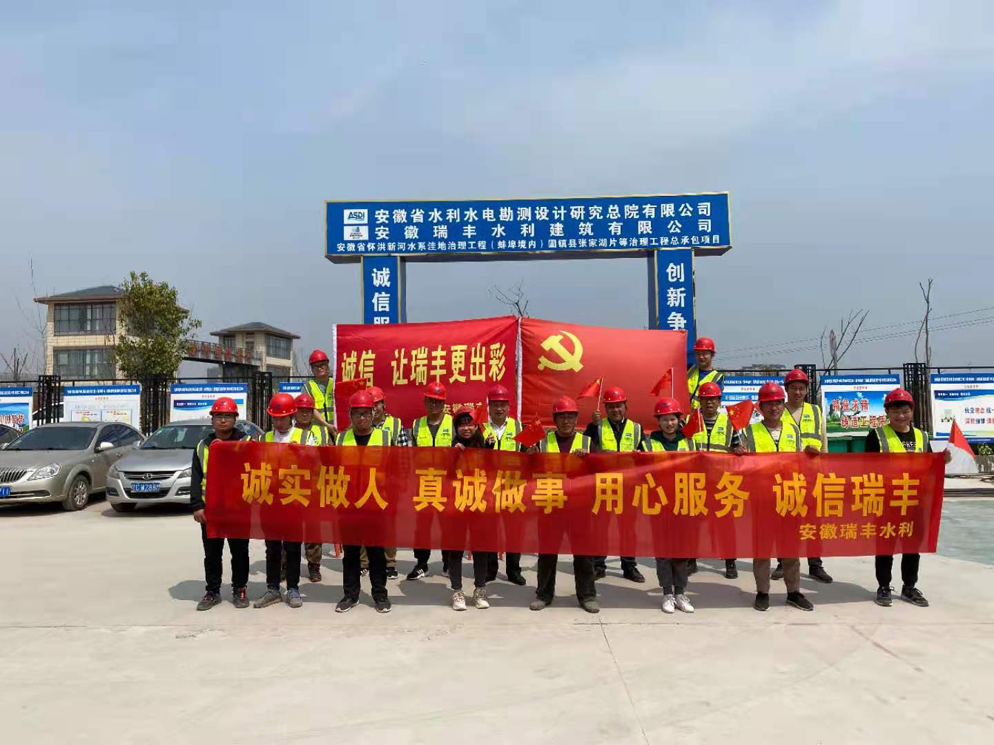 活動(dòng)開始,項(xiàng)目技術(shù)負(fù)責(zé)人王停宣讀文明誠信倡議書、新蚌埠市市民公約,職工們積極響應(yīng),黨員同志積極帶頭簽署個(gè)人誠信保證書,做一個(gè)誠實(shí)守信的人。隨后全體項(xiàng)目部成員在主題橫幅(誠信做人,真誠做事,用心服務(wù),誠信水利)上進(jìn)行簽字活動(dòng),合影留念。